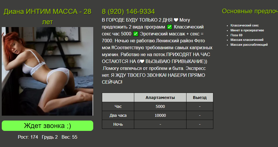 Нет) Я в переписке написал, что мне 29)) сейчас посмотрел. И она пишет, "минет будет 2500 + окончание". Т.е. у нее подразумевался минет без окончания))) да, короче, много ей внимания. Кто хочет выкинуть деньги, велком, как говорится.