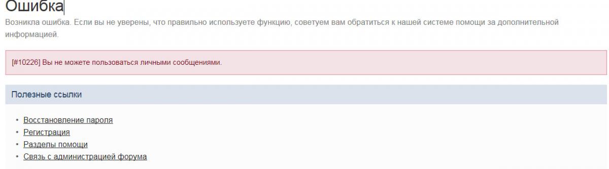 Здравствуйте! Подскажите, почему не получается отправить личное сообщение и пользоваться личным ящиком на форуме? Это ошибка, или какая-то другая причина? Буду рад, если кто поможет.