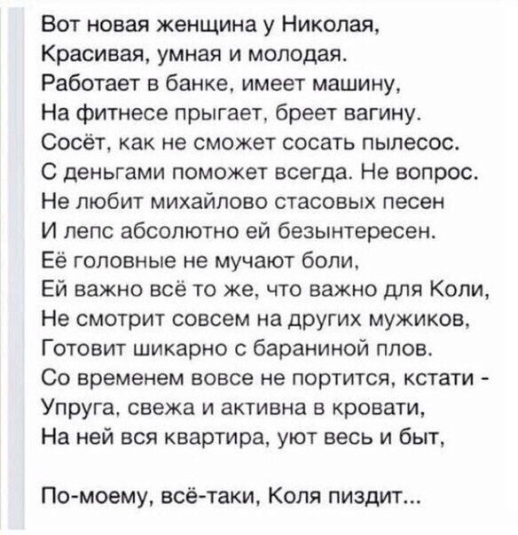 ), а теперь скатились ваще ниже плинтуса - даже если девушко риально существует, наверняка ф иё литсе меня ждёт ачиридная пиздецома