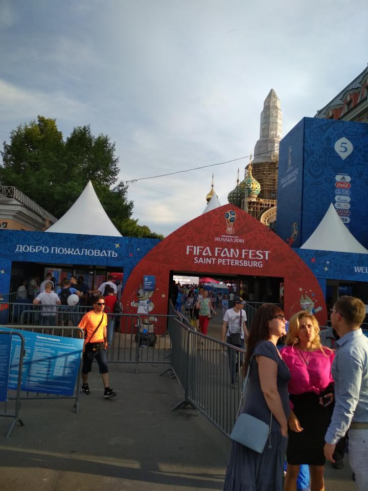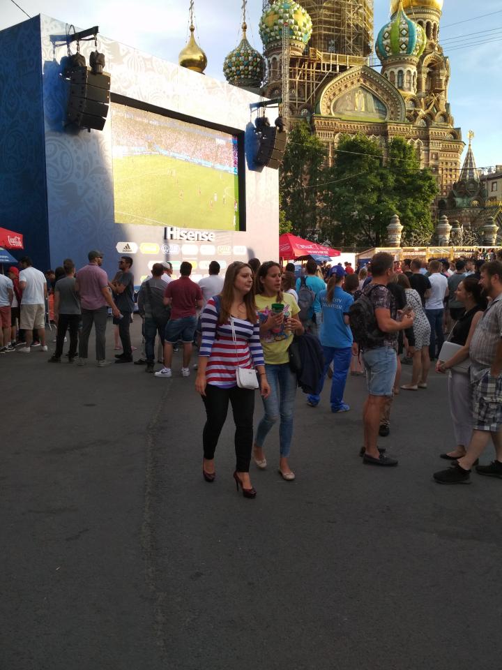 Решил окунуться, так сказать, в гущу событий. Зашел на ФИФА Фан-Фест, у "Спаса на Крови". Глянуть, как перуанцы с датчанами катают. Понаблюдать за нулевой борьбой...(пока). И как перуанцы запороли стопроцентный голевой момент. За что и поплатились, тут же получив ответку в виде гола.