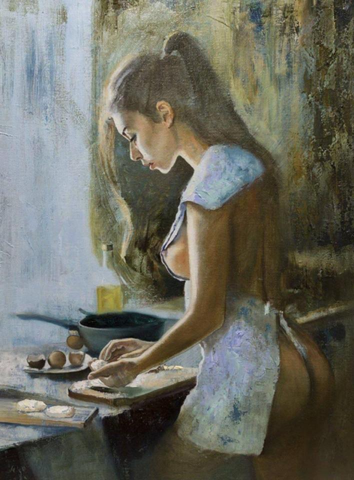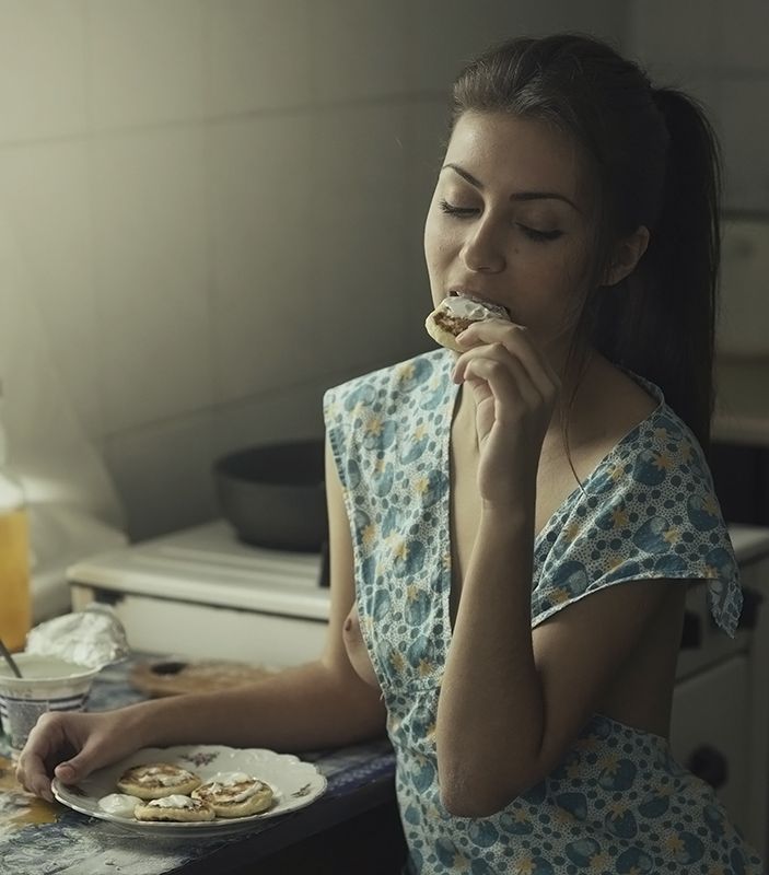 Не может же она лепить яичницу, и порции складывать на доску, слева.)