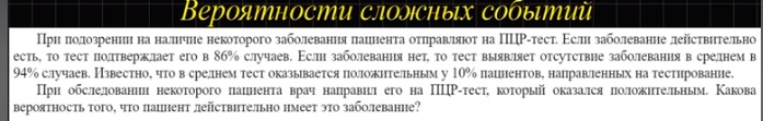 Поэтому вероятность того, что положительный ПЦР-тест был взят у больного пациента, равна