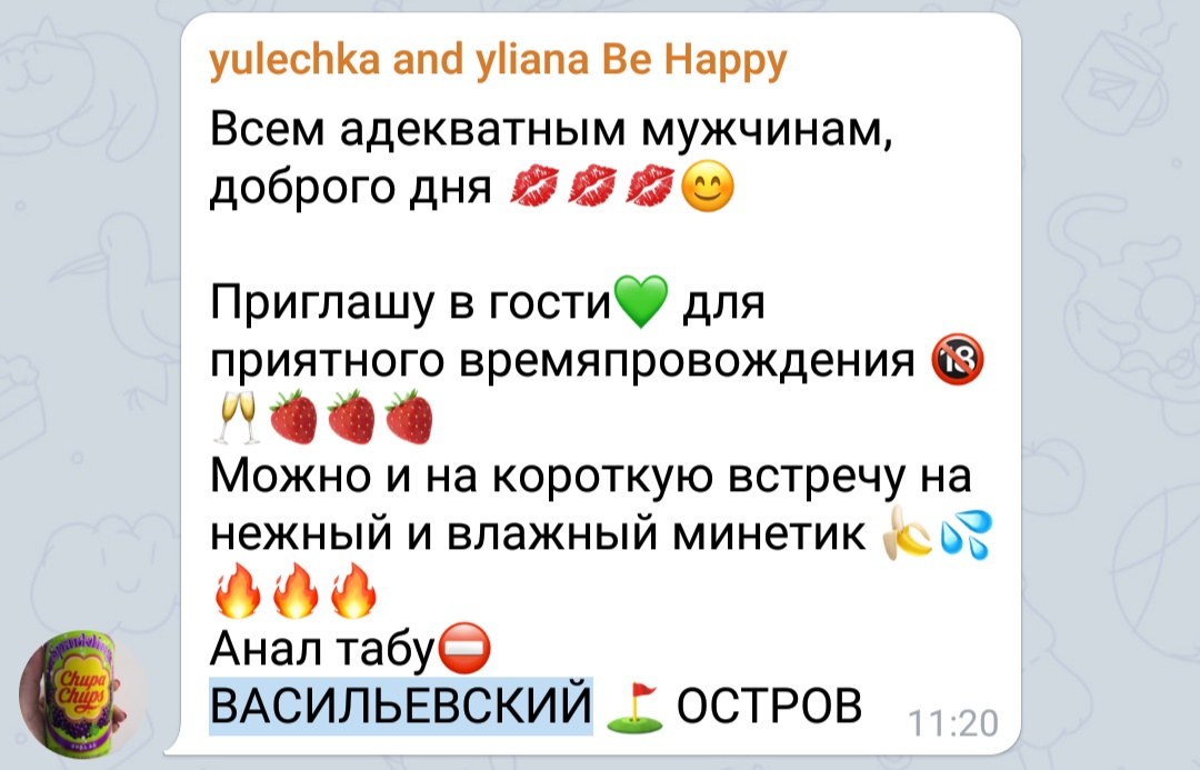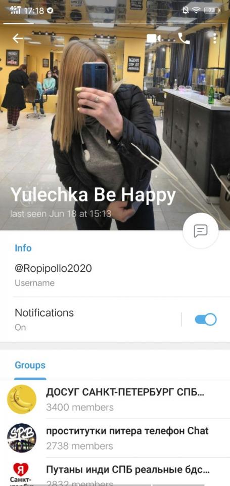Нашел данную деву в группе в телеге. Пиарится сразу в нескольких.