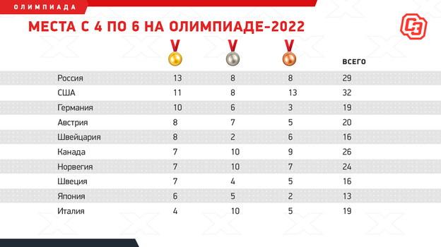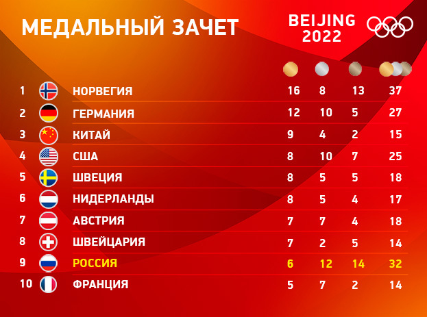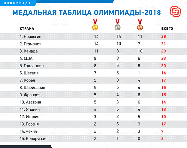 Медальный зачет, итог:
