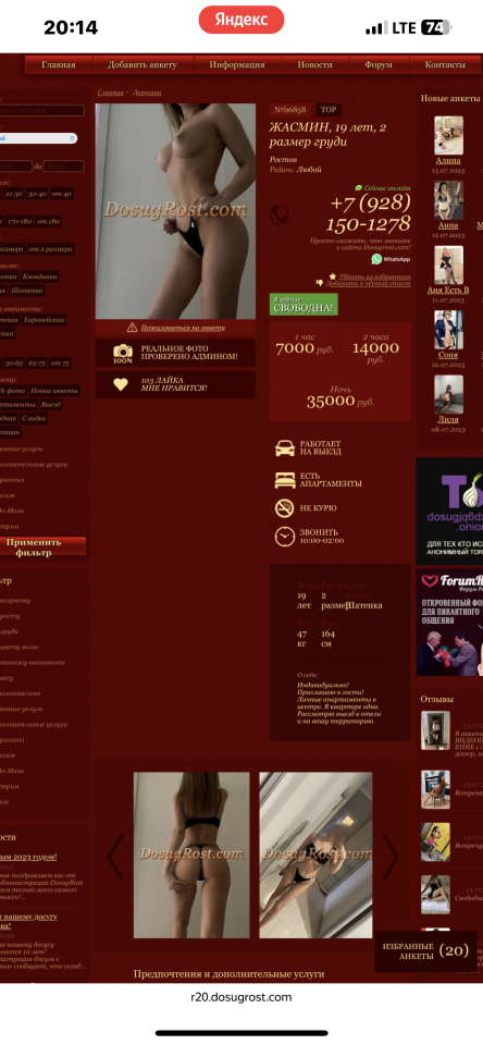 На этом всё плюсы заканчиваются и начинаются минусы. Дверь мне хуй кто открыл, пока не вошёл сам. Тут же с порога инструктаж, допов нет никаких, два окончания за час- одно при мвр, другое при проникновении, раздеваться в коридоре или ванной, никуда пройти нельзя. Я аж прихуел с порога) Говорю, я читал анкету и не дроблюсь в глаза, видел, что там написано. Она, ну типа много приходят и всё равно спрашивают. Я, ну и что, а вдруг там неверно написано, лично такое встречал - допов нет в анкете, а по факту есть. Контакт сразу не пошёл. Показал, свои презики - хуй, ебётся только в своих. Блять, хотел уйти, но было желание отъебать эту охуевшую шлюху с короной на голове. Отдал 7000 за час. Помылся. Захожу в комнату и чуть не уебался! Говорю, ты хоть свет где-то включи или ты пиздец какая страшная))) Включила, подъбка прокатила))) Лёг. Разделась, села рядом, обрызгала член хлориком, взяла его двумя пальцами и начала тупо дрочить))) Я блять такое первый раз увидел. Подрочила минуту, взяла салфетку, вытерла свою руку и начала опять дрочить двумя пальцами хуй) Типа, а хулиган у тебя не стоит? Такое ощущение, что ты не хотел оставаться. Отвечаю, да, не хотел. А зачем остался? Просто так))) Короче разговор не шёл, хуй не стоял)) Одела през на вялого. Поминетила- реакции хуй))) Сняла през и опять дрочить) И всё время периодически вытирала себе руку, как будто у меня член был хуй пойми в чём. При этом постоянно пиздела какая она охуенная, а у меня не стоит на неё, типа я ей грубо отвечаю и всё в таком духе. Меня эта хуйня заебала, встаю и одеваюсь) Говорю, пересчитывай час как за экспресс и я пошёл. У меня такого нет, типа только за полный час. Пишу диспу. Та тоже мне - типа контакт был, и ни ебёт. Какой контакт - попытка подрочить и выебать мне мозг?) Взяла деньги - отрабатывай. Лиса - хорошо, приятного вам отдыха) Говорю шалаве - дисп написала, что пока я не кончу от секса, могу не уходить, так что сейчас будет попытка номер два, будешь бабки отрабатывать. Поняла? Шлюха глаза выпучила, видно не ожидала такого подхода))) она же бля королева и у всех встаёт на неё, никто ей не перечит и делают как она говорит.