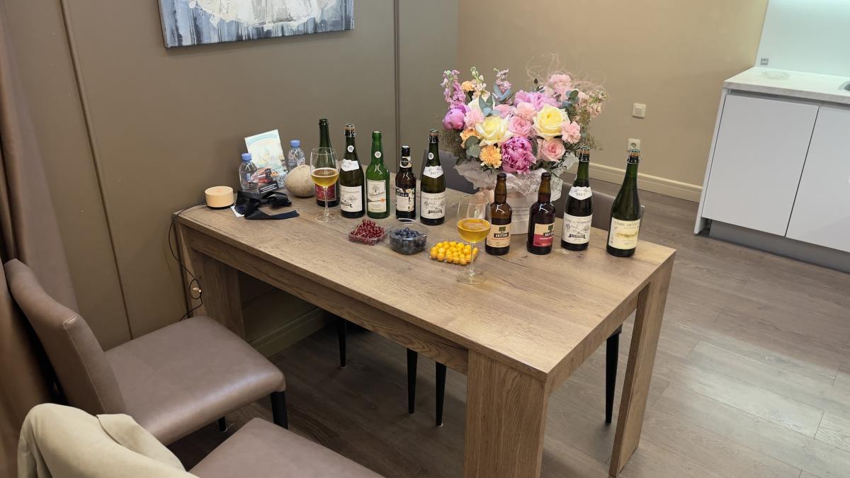 Встретила в тёмном халате с пояском, на голое тело. Настрой демонстрировала доброжелательный. Общается легко и непринужденно, на расслабоне, чувство юмора имеется.