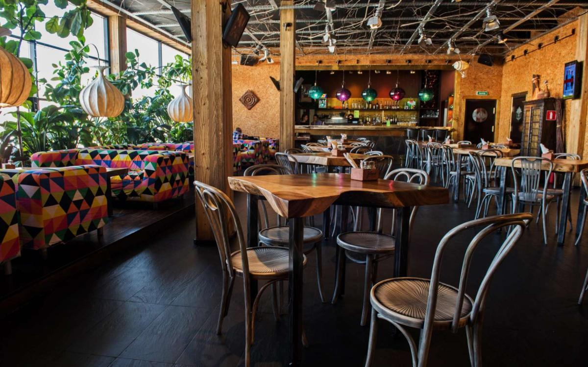 Меню - полная эклектика, от бургеров и пиццы до корейской лапши и мексиканских блюд. Настолько хуёво приготовленный чили кон карне я ещё нигде не ел, и порция за 440 руб. совершенно микроскопическая - оно у них почему-то в разделе меню "закуски". В общем, с точки зрения пожрать показалось сомнительно.