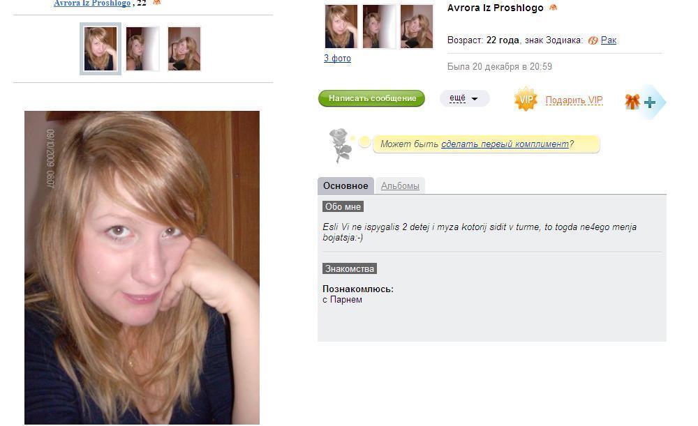 да фуфло это все. Может так и было лет несколько назад - а ща фуфло. Мой лучший друг остался один. Так получилось. Жена ушла к другому. Любовь, мол, у нее. А он человек скромный, не бабник. не ходок и т.п.. Нормальный мужик в расцвете сил, не урод, нормально упакован. Машина, квартира, работа, интеллект - прЫнц, короче. Повесил на этой куямбе анкету. Просто как думал, так и указал. Хороша анкета, - я одобрил.
