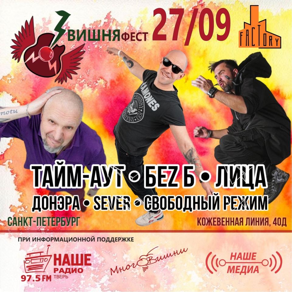27 сентября, в клубе FACTORY 3 (Севкабель Порт, Кожевенная линия, 40Д) пройдет фестиваль ВишняФест