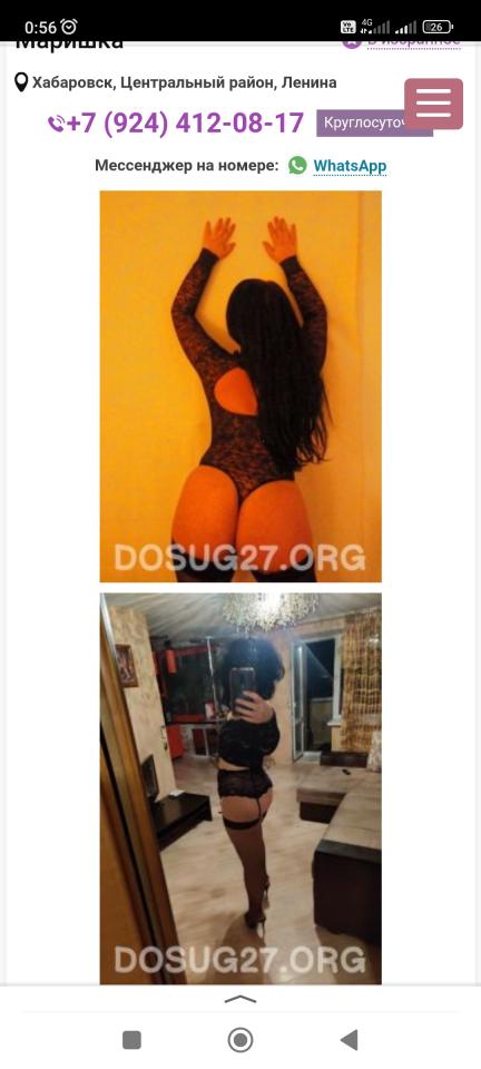 отдыхал как то одиноко в сауне, в РК"олимпик", спросил у администратора неловко про девушек, так и девушка приехала в шесть утра! хорошенькая миниатюрная девочка, с татуировочками и третьим размером грудей, которые были благополучно сношены! по опциям: кс, ос, третьего не дано, тоесть ас нет. кстати не пишу про мбр, потому как и кс был без резины. запросила пятерку. а так хабаровск вполне еБАБЕльный город!
