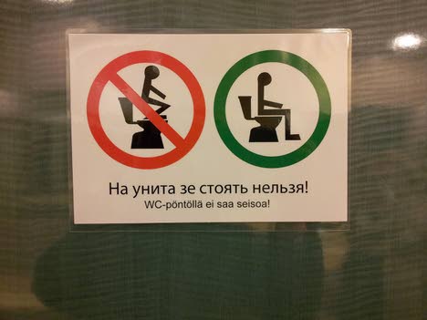 В торговых центрах Финляндии появились обидные для россиян красочные инструкции на русском языке, обучающие российских туристов правилам пользования туалетами — по мнению финнов, в русских традициях принято вставать ногами на унитаз
